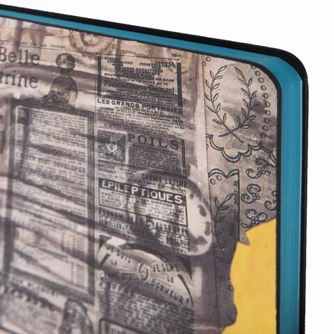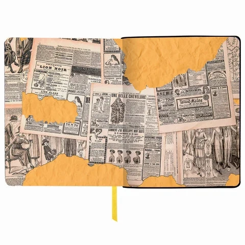 Внутренний блок содержит 80 листов бумаги кремового цвета плотностью 70 г/м2. Обложка выполнена из износоустойчивого кожзама. Линовка - клетка. Сшивка нитью надежно скрепляет листы между собой. Формат А5 (168х208 мм).