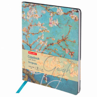 Тетрадь формата А5 (168х208 мм) содержит 80 листов белой бумаги плотностью 70 г/м2. Обложка выполнена из износоустойчивой экокожи с гладкой текстурой и тиснением фольгой. Линовка блока - клетка. Сшивка нитью надежно скрепляет листы между собой.