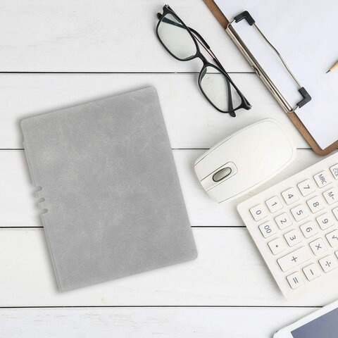 Тетрадь А5 (175х215 мм), BRAUBERG 'NEBRASKA', 96 л., под кожу, клетка, серый, 113415