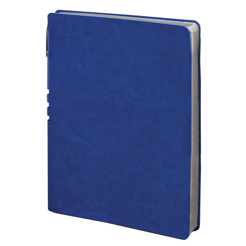 Мягкая интегральная обложка стилизована под кожу. Имеет закругленные уголки. Подходит для горячего тиснения. 120 листов позволят зафиксировать большой объем информации. Линовка блока в клетку дает возможность аккуратно заполнить цифровые значения, а также нанести чертежные зарисовки. Внутренний блок выполнен из офсета белого цвета плотностью 70 г/м2 и крепится к обложке с помощью книжного переплета. Прокрашенный срез блокнота придает изделию шарм. Дополнением является закладка-ляссе, с помощью которой при необходимости можно быстро открыть нужную страницу и шариковая ручка. Формат блокнота А5 (175х215 мм) позволит владельцу поместить его в кейс или сумку малых габаритов. Выполнена в синем цвете.