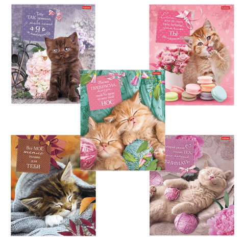 Тетрадь А5, 40 л., HATBER, скоба, клетка, обложка картон, 'Без кота - жизнь не та' (5 видов), 40Т5В1