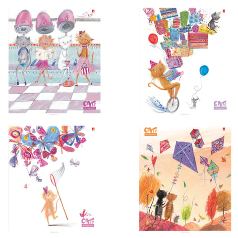 Тетрадь А5, 48 л., АЛЬТ, скоба, клетка, фольга, гибридный лак, 'ПРАЗДНИК. КОШКИ' (5 видов), 7-48-114