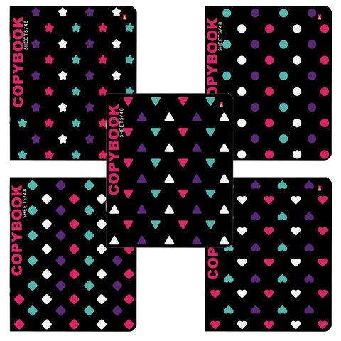 Тетрадь А5 48 л. АЛЬТ скоба, клетка, глянцевый лак, 'ДИСКО' (5 видов), 7-48-779