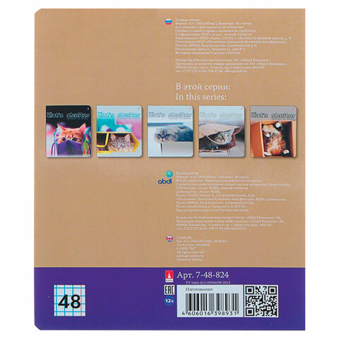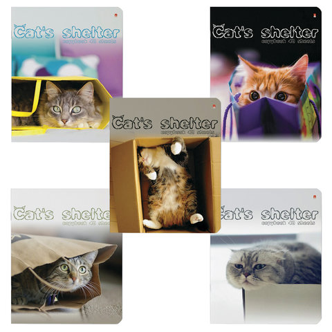 Тетрадь А5 48 л. АЛЬТ скоба, клетка, глянцевый лак, 'КОШКИН ДОМ', 7-48-824