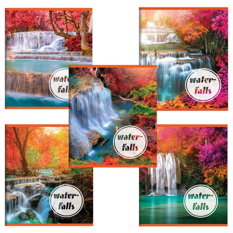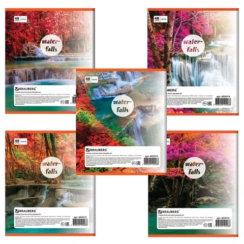 Тетрадь А5, 48 л., BRAUBERG ЭКО, клетка, обложка картон, ВОДОПАДЫ, 403019
