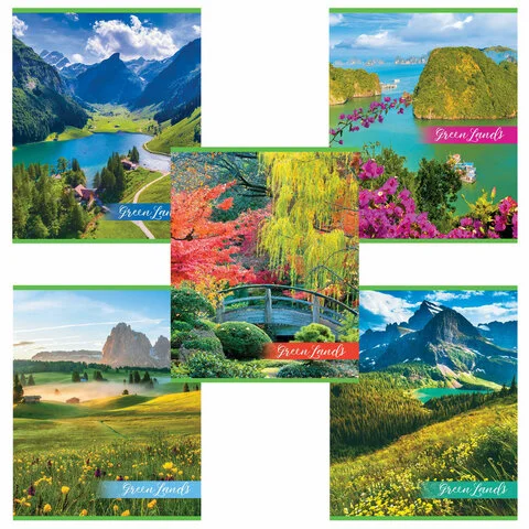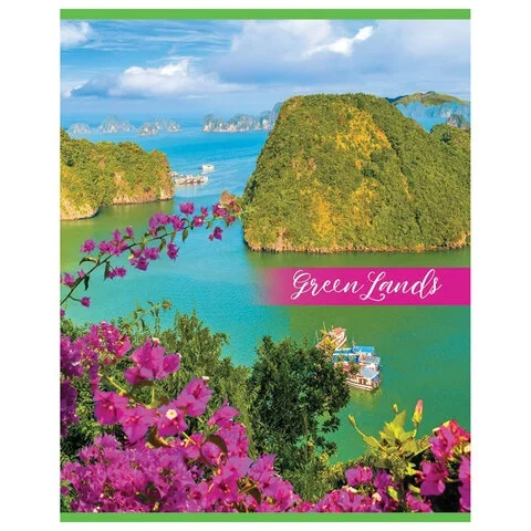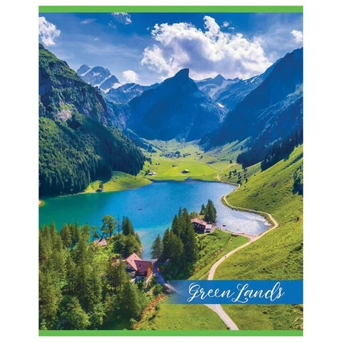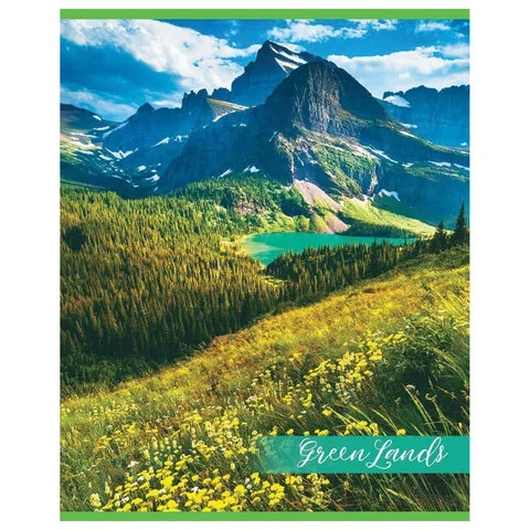 Тетрадь А5, 48 л., HATBER-ECO скоба, офсет №2 ЭКОНОМ, клетка, обложка мелованная бумага, 'GreenLand'
