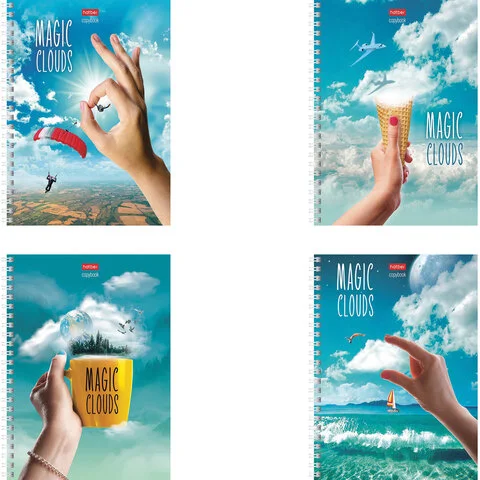 Тетрадь А5, 48 л., HATBER, гребень, клетка, матовая ламинация, 'Облака' (4 вида в спайке), 48Т5лВ1гр
