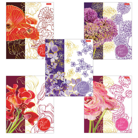 Тетрадь А5, 48 л., HATBER, скоба, клетка, 3D фольга, 'Painted Flowers' (5 видов в спайке), 48Т5лофВ1