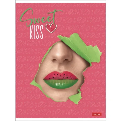 Тетрадь А5, 48 л., HATBER, скоба, клетка, матовая ламинация, 3D-лак, 'Sweet kiss' (5 видов в спайке)