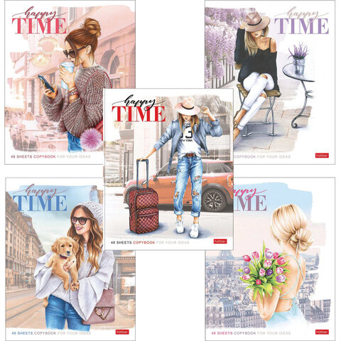 Тетрадь А5, 48 л., HATBER, скоба, клетка, матовая ламинация, 'Happy time' (5 видов в спайке), 48Т5лВ