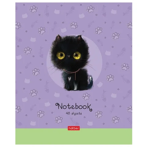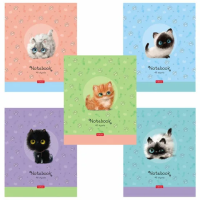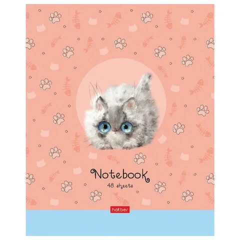 Тетрадь А5 48 л. HATBER скоба, клетка, обложка картон, 'Кошарики' (5 видов в спайке), 48Т5В1