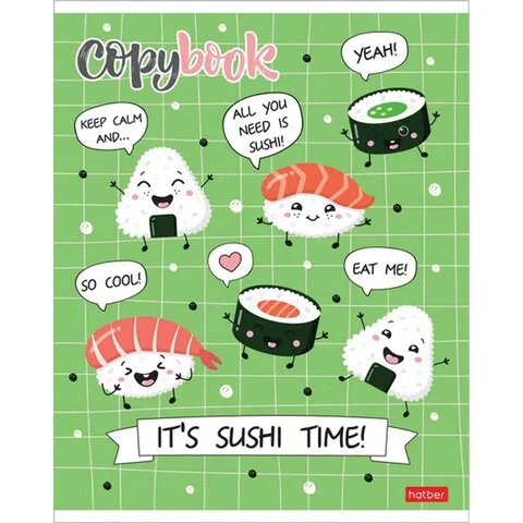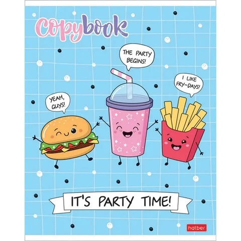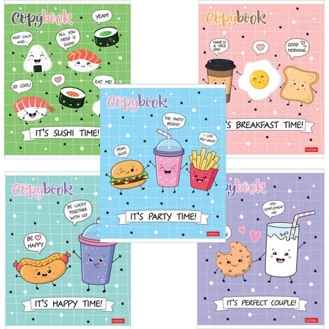Тетрадь А5, 48 л., HATBER, скоба, клетка, обложка картон, 'ПРИШЛА ЕДА' (5 видов в спайке), 48Т5лВ1