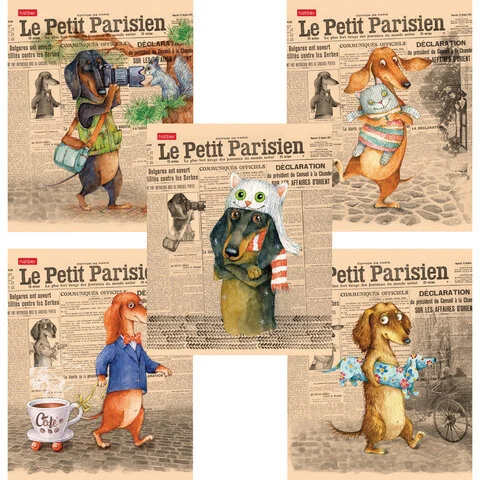 Тетрадь А5, 48 л., HATBER, скоба, клетка, обложка картон, ТаксаLIFE (5 видов в спайке), 48Т5В1