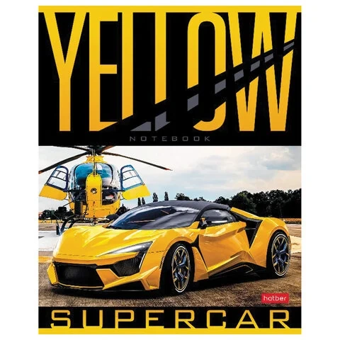Тетрадь А5 48 л. HATBER скоба, клетка, обложка картон, 'YELLOWsupercar' (5 видов в спайке), 48Т5В1