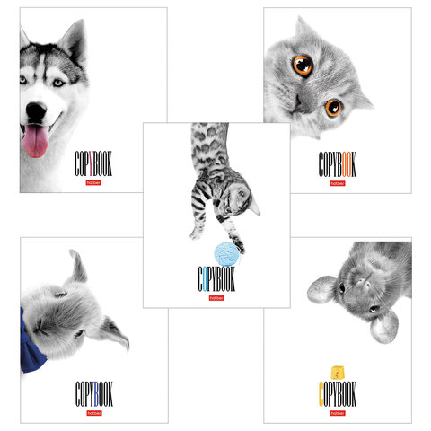 Тетрадь, А5, 48 л., HATBER, скоба, клетка, выборочный лак, 'Кто здесь?' (5 видов в спайке), 48Т5вмВ1