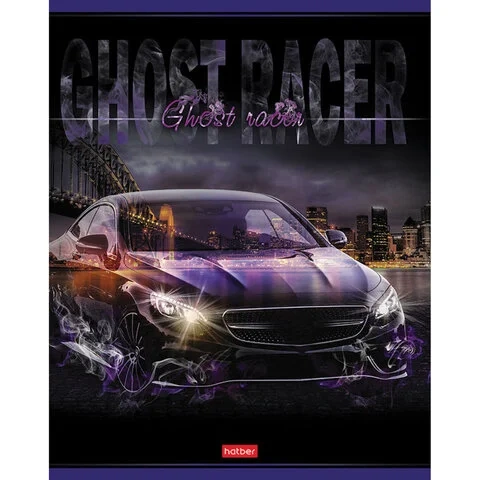 Тетрадь А5 48 л. HATBER скоба, клетка, выборочный лак, 'Призрачный гонщик' (5 видов в спайке), 48Т5в