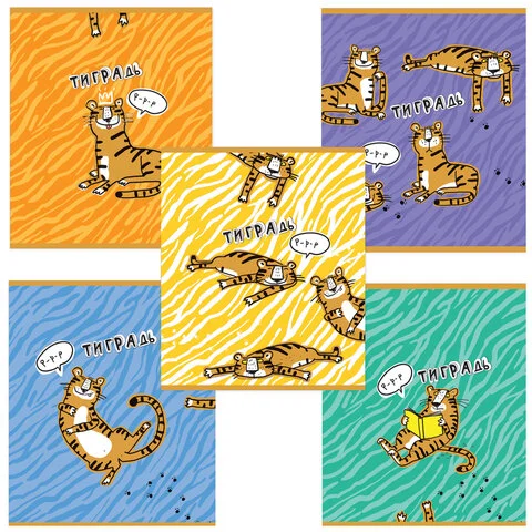 Тетрадь А5 48 л. ПЗБМ, скоба, клетка, фольга, конгрев, TWIN лак, 'Тиградь' (5 видов), 029135