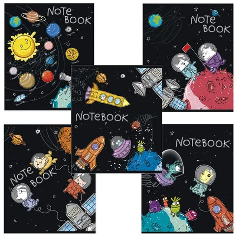 Тетрадь А5 48 л. ПЗБМ, скоба, клетка, конгрев, выборочный TWIN лак, 'Полетели!' (5 видов), 028047