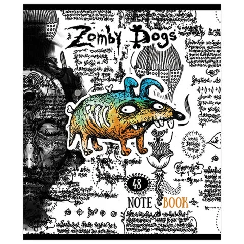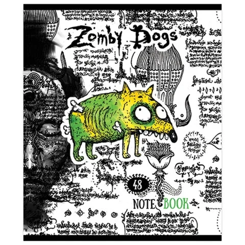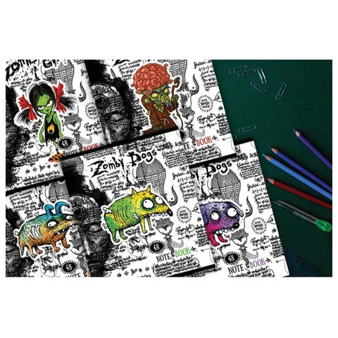 Тетрадь А5, 48 л., ПЗБМ, скоба, клетка, конгрев, выборочный TWIN лак, 'Зомбаки' (5 видов), 028985