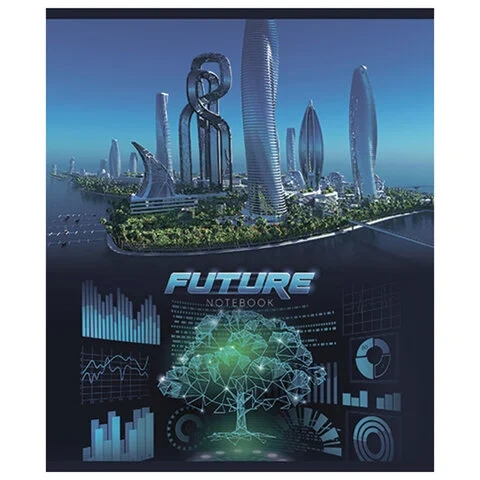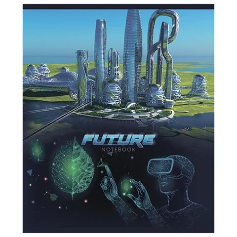 Тетрадь А5, 48 л., ПЗБМ, скоба, клетка, ламинация, фольга, выборочный лак, 'Города будущего' (5 видо
