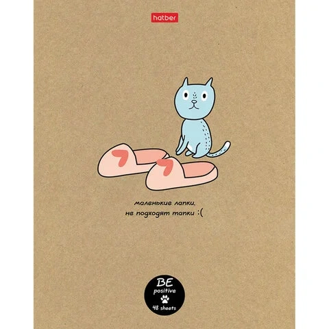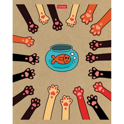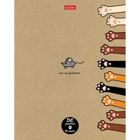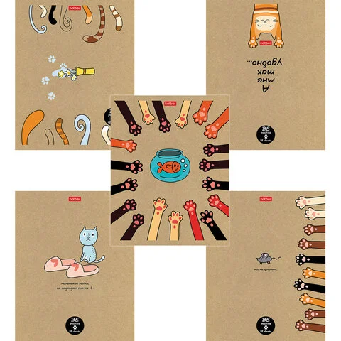 Тетрадь А5 48л. HATBER скоба, клетка, обложка крафт, На мягких лапках (5 видов в спайке), 48Т5В1