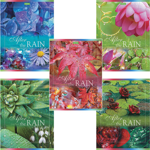 Тетрадь А5, 80 л., HATBER-ECO, скоба, клетка, обложка картон, 'После дождя' (5 видов), 80Т5C1