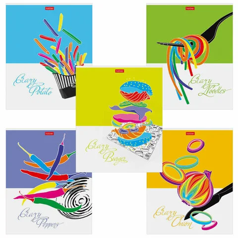 Тетрадь А5, 80 л., HATBER скоба, клетка, обложка картон, 'Crazy food' (5 видов), 80Т5В1