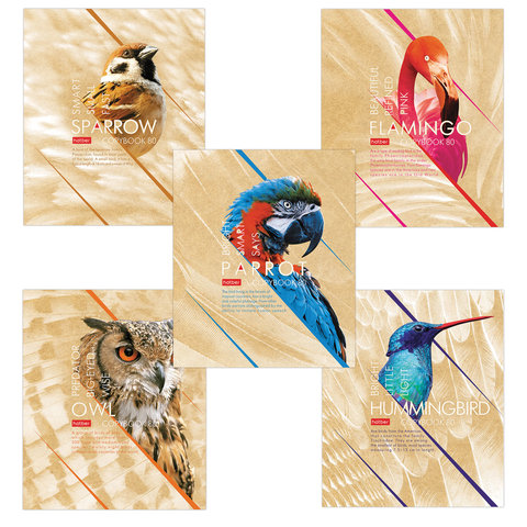 Тетрадь А5, 80 л., HATBER, скоба, клетка, выборочный лак, 'Birds' (5 видов), 80Т5вмВ1