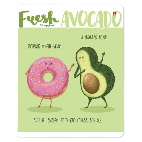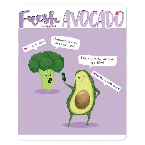 Авокадо в тренде! В чем же его секрет? В бодипозитиве! Кстати, авокадо это «он» или «она»? Или это две половинки одного целого? Упитанная тетрадка на целых 96 листов!