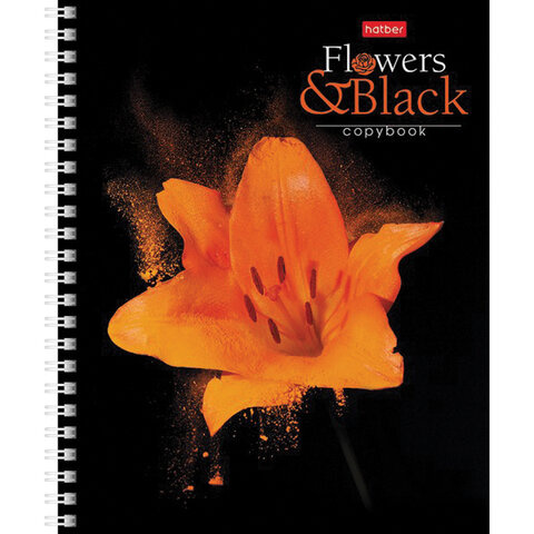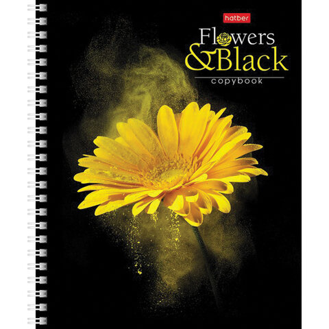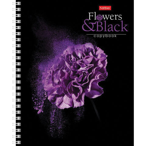 Тетрадь А5, 96 л., HATBER, гребень, клетка, обложка картон, 'FlowerOnblack' (4 вида в спайке), 96Т5В