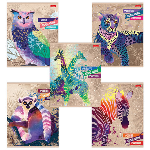 Тетрадь А5, 96 л., HATBER, скоба, клетка, фольг, выборочный лак, 'Яркий мир' (5 видов), 96Т5фвмВ1