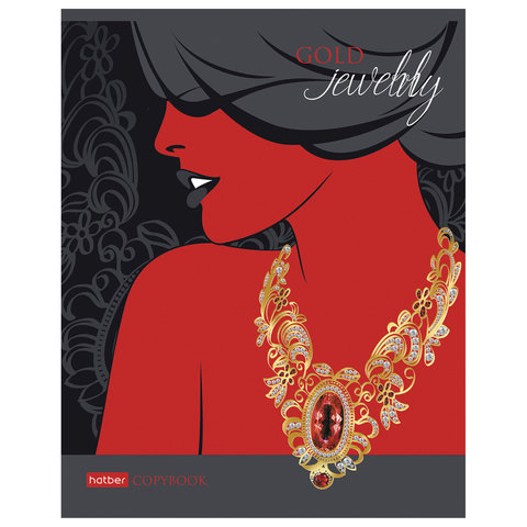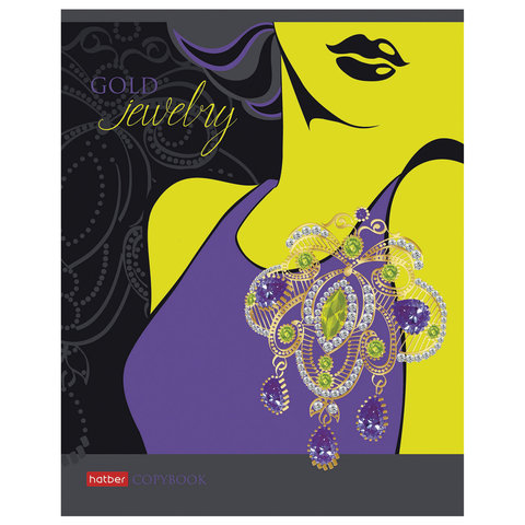 Тетрадь, А5, 96 л., HATBER, скоба, клетка, фольга, конгрев, выборочный лак, 'Gold jewelry' (5 видов)