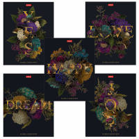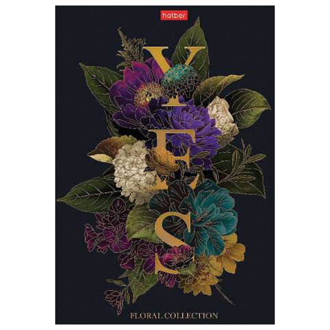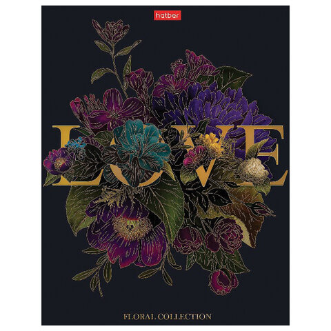 Тетрадь А5, 96 л., HATBER скоба, клетка, матовая ламинация, 3D фольга, 'Язык цветов' (5 видов), 96Т5