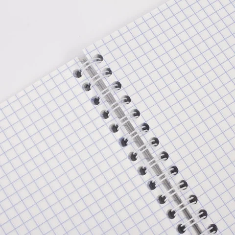 Внутренний блок содержит 96 листов офсетной бумаги плотностью 60 г/м2. Обложка изготовлена из бумвинила. Линовка - клетка. Евроспираль надежно скрепляет листы между собой. Белизна - 92%. Формат А5.