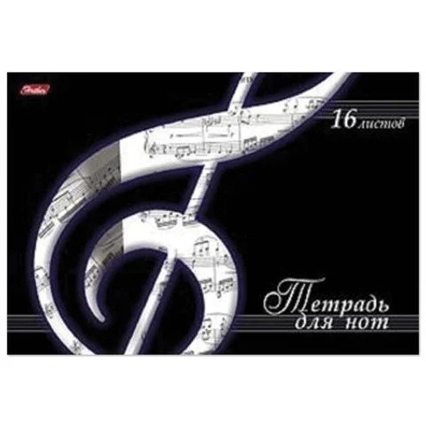 Тетрадь для нот Hatber Скрипичный ключ, А4, 16 листов, горизонтальная, на скрепке, мелованный картон