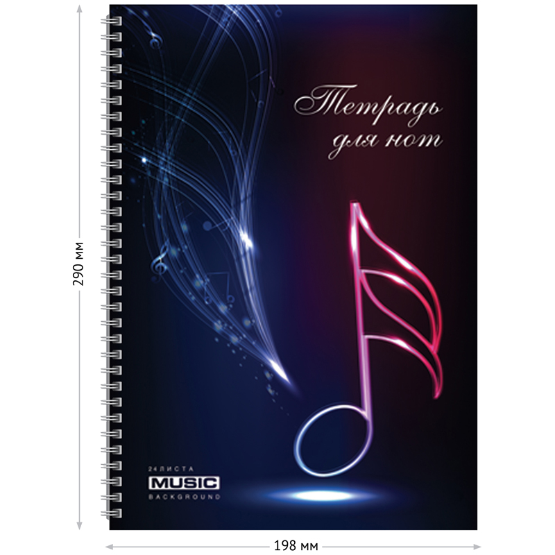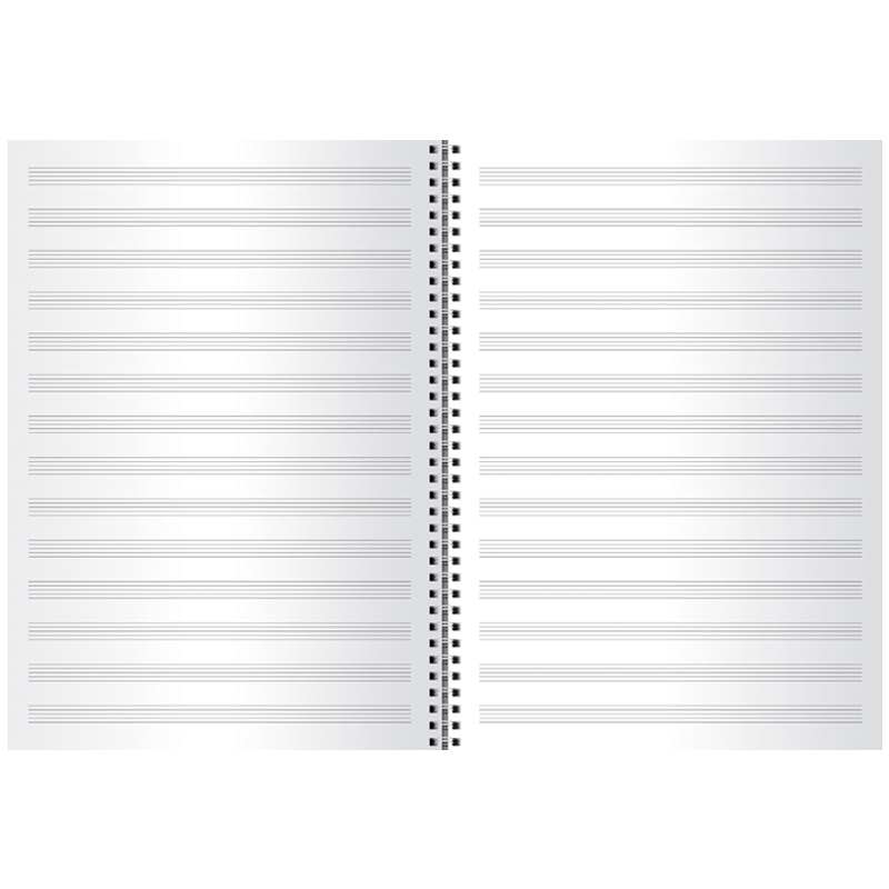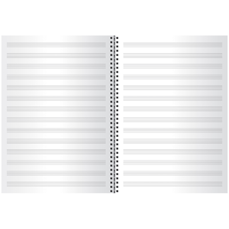 Тетрадь для нот на гребне, вертикальная ориентация. Верхняя и нижняя обложки тетради выполнены из качественного плотного целлюлозного картона с полноцветной запечаткой. Плотный внутренний блок из бумаги 80г/м2 и 100% белизны повышает комфорт от пользования тетрадью минимизируя просвечивание записей на другой стороне листа.