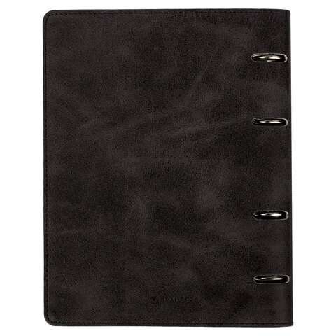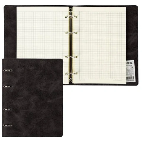 Тетрадь на кольцах Brauberg Main черная, А5, 120 листов, в клетку, искусственная кожа