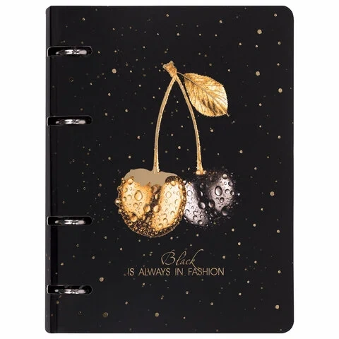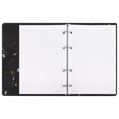 Снабжена кольцевым механизмом с 4 кольцами для подшивки сменных блоков, что позволит брать на учебу/работу всего одну тетрадь с возможностью добавлять и менять листы.