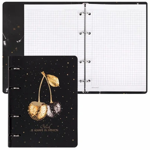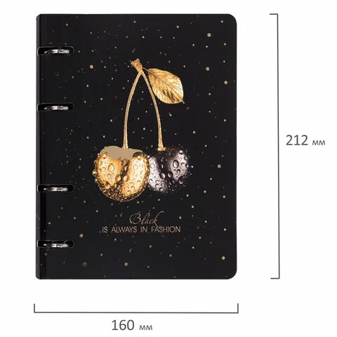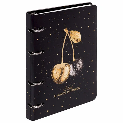 Тетрадь на кольцах А5 160х212 мм, 120 листов, картон, фольга, клетка, BRAUBERG, 'Black&Gold', 404735