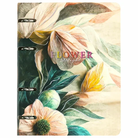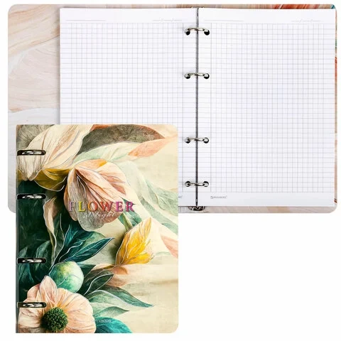 Тетрадь на кольцах А5 160х212 мм, 120 листов, картон, фольга, клетка, BRAUBERG, 'Delicate flowers',