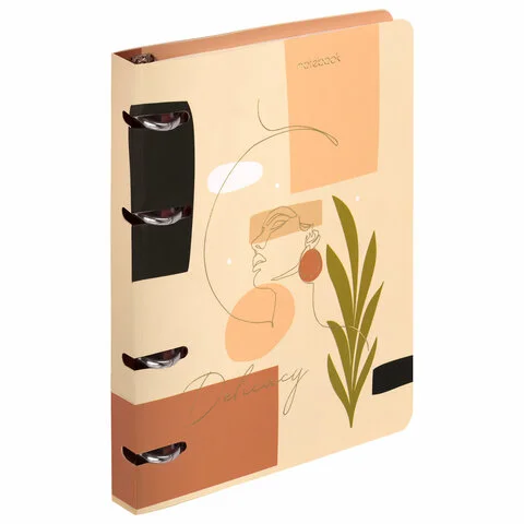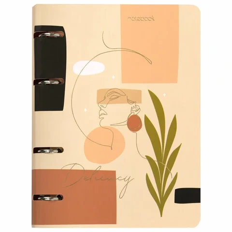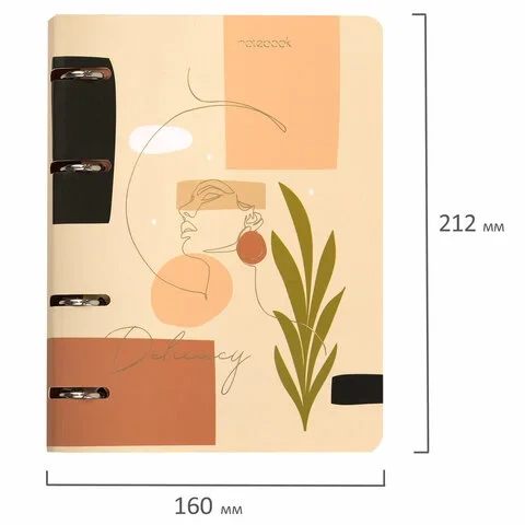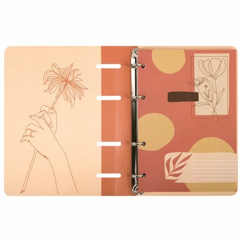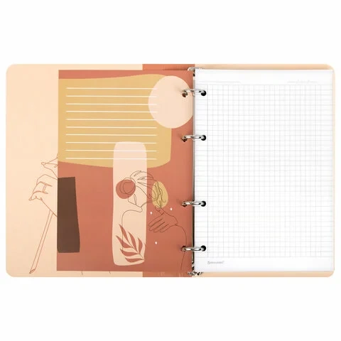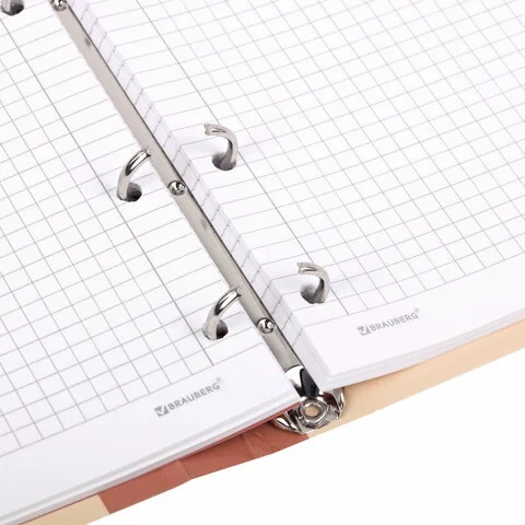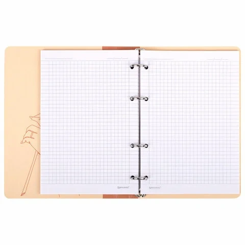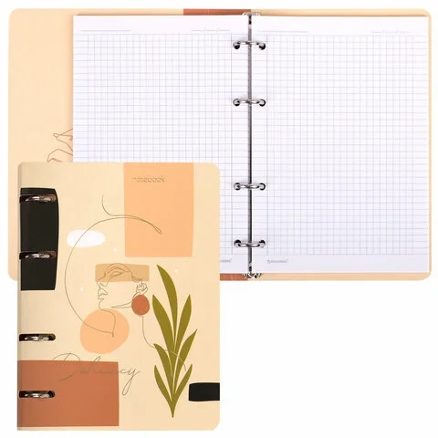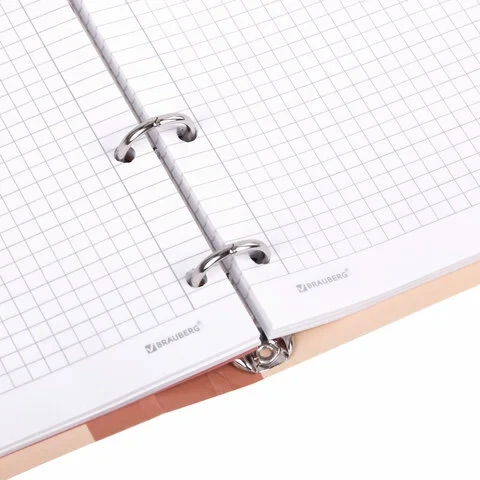 Снабжена кольцевым механизмом с 4 кольцами для подшивки сменных блоков, что позволит брать на учебу/работу всего одну тетрадь с возможностью добавлять и менять листы.