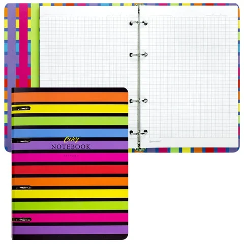 Снабжена кольцевым механизмом с 4 кольцами для подшивки сменных блоков, что позволит брать на учебу/работу всего одну тетрадь с возможностью добавлять и менять листы.