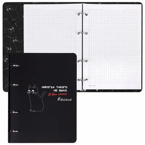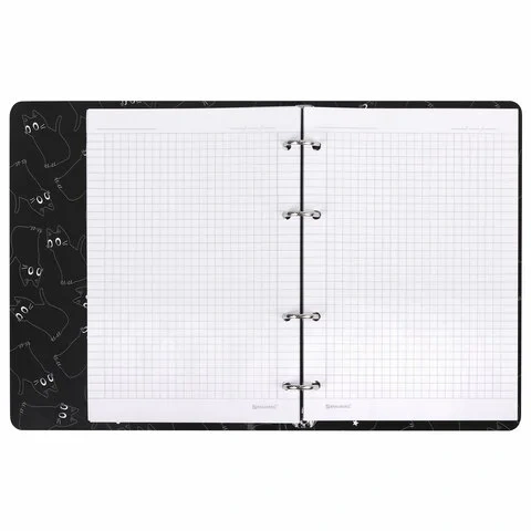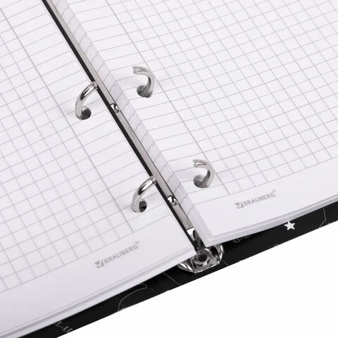 Снабжена кольцевым механизмом с 4 кольцами для подшивки сменных блоков, что позволит брать на учебу/работу всего одну тетрадь с возможностью добавлять и менять листы.