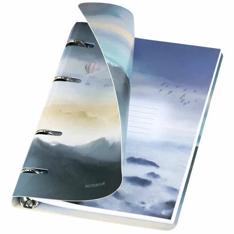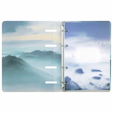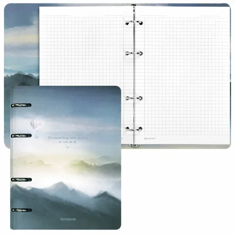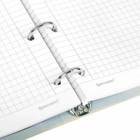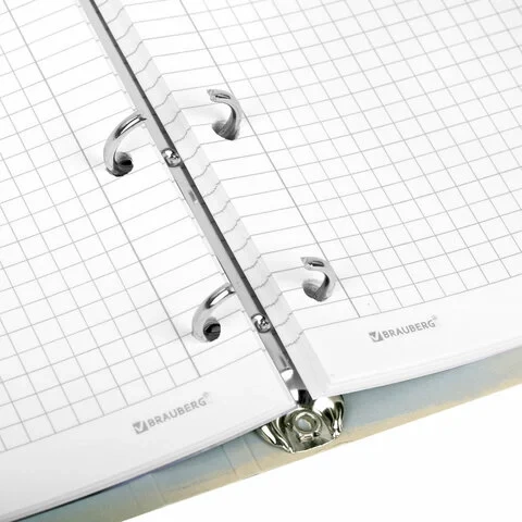 Снабжена кольцевым механизмом с 4 кольцами для подшивки сменных блоков, что позволит брать на учебу/работу всего одну тетрадь с возможностью добавлять и менять листы.