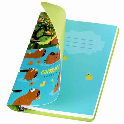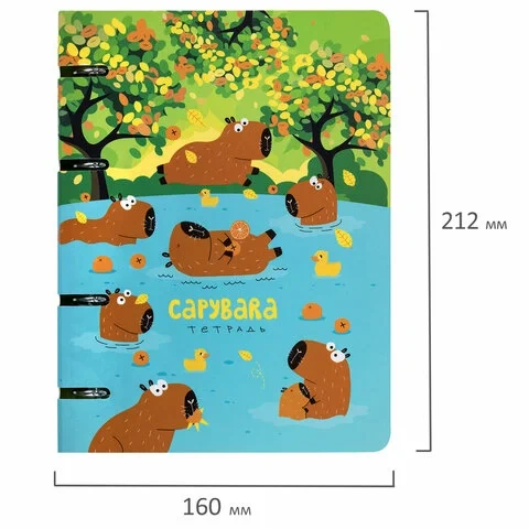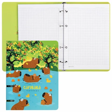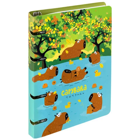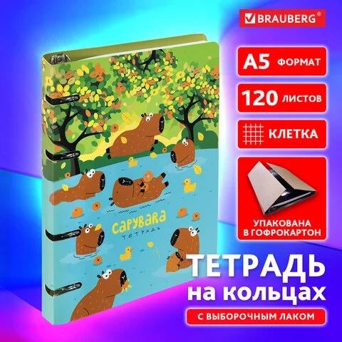 Тетрадь на кольцах А5 160х212 мм, 120 листов, картон, выборочный лак, клетка, BRAUBERG, 'Капибары',