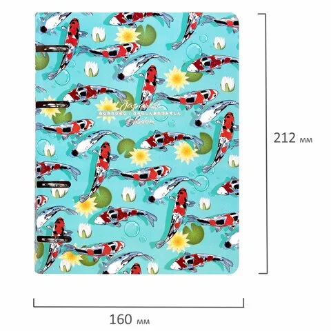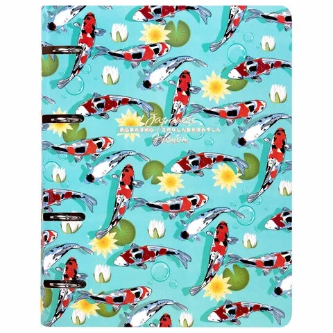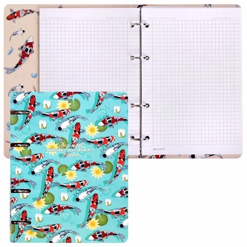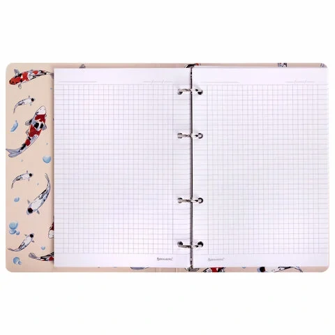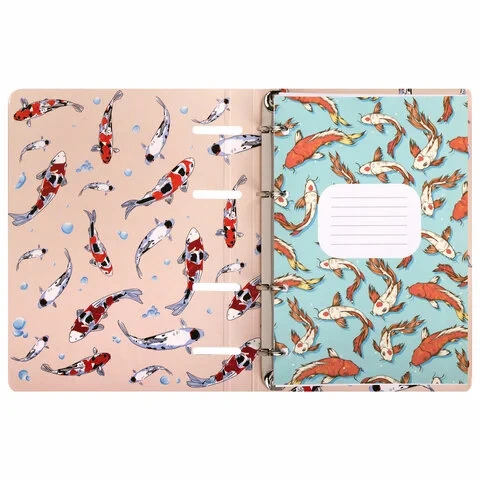 Тетрадь на кольцах А5 160х212 мм, 120 листов, картон, выборочный лак, клетка, BRAUBERG, 'Карпы Кои',