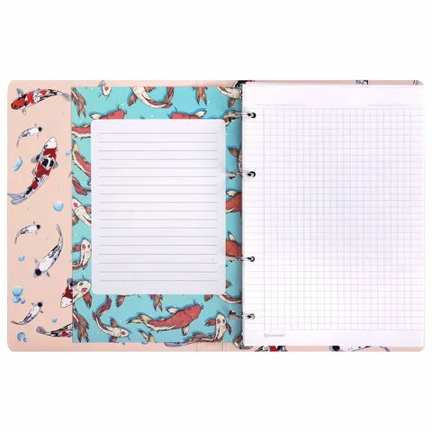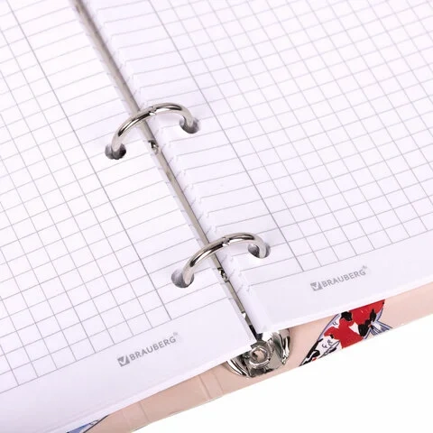 Формат А5 является стандартным, поэтому тетрадь удобно носить в рюкзаке/ранце или папке. Оборудована кольцевым механизмом с 4 кольцами для подшивки сменных блоков, что позволит брать на учебу/работу всего одну тетрадь с возможностью добавлять и менять листы.