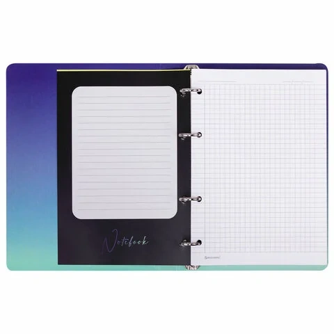 Формат А5 является стандартным, поэтому тетрадь удобно носить в рюкзаке/ранце или папке. Оборудована кольцевым механизмом с 4 кольцами для подшивки сменных блоков, что позволит брать на учебу/работу всего одну тетрадь с возможностью добавлять и менять листы.