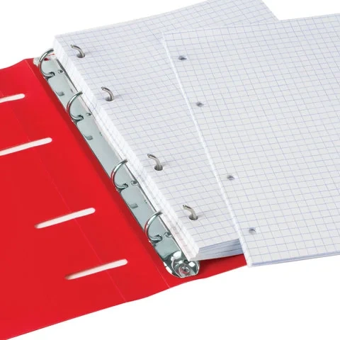 Блок состоит из 80 листов офсетной бумаги белого цвета плотностью 60 г/м2. Линовка - клетка. Обложка с вырубкой под кольца выполнена из износоустойчивого пластика. Формат А5 является стандартным и обеспечивает комфортное ношение в рюкзаке/ранце или папке. Оборудована кольцевым механизмом с 4-мя кольцами для подшивки сменных блоков, что позволит носить на учебу/работу всего одну тетрадь с возможностью добавлять и менять листы.