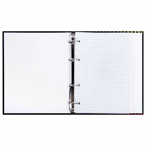 Снабжена кольцевым механизмом с 4 кольцами для подшивки сменных блоков, что позволит брать на учебу/работу всего одну тетрадь с возможностью добавлять и менять листы.